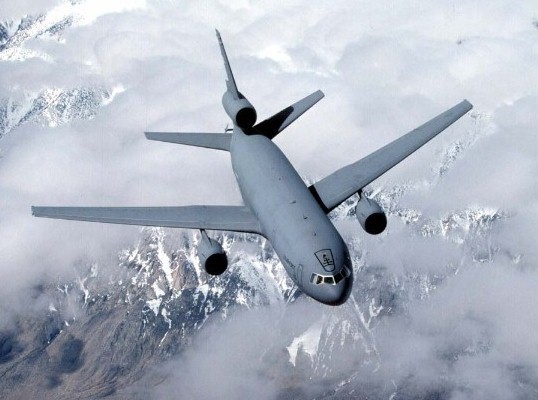 I finished my career flying the mighty McDonnell Douglas KC-10A Extender aerial tanker, also as a Flight Engineer. Three engines generate 157,500 lbs of thrust, with a maximum takeoff weight of 590,000 lbs and a cruising speed of .825 Mach. I logged over 3,600 hours on this aircraft between 1995 and my retirement in 2004. |